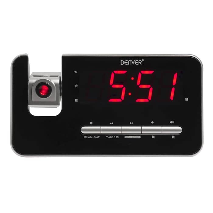 Med "Clockradio med Projektor" fra Denver Electronics får du en stilren og alsidig løsning til både tid, dato og vækkeur. Det moderne design og de mange funktioner gør det til et must-have til soveværelset.