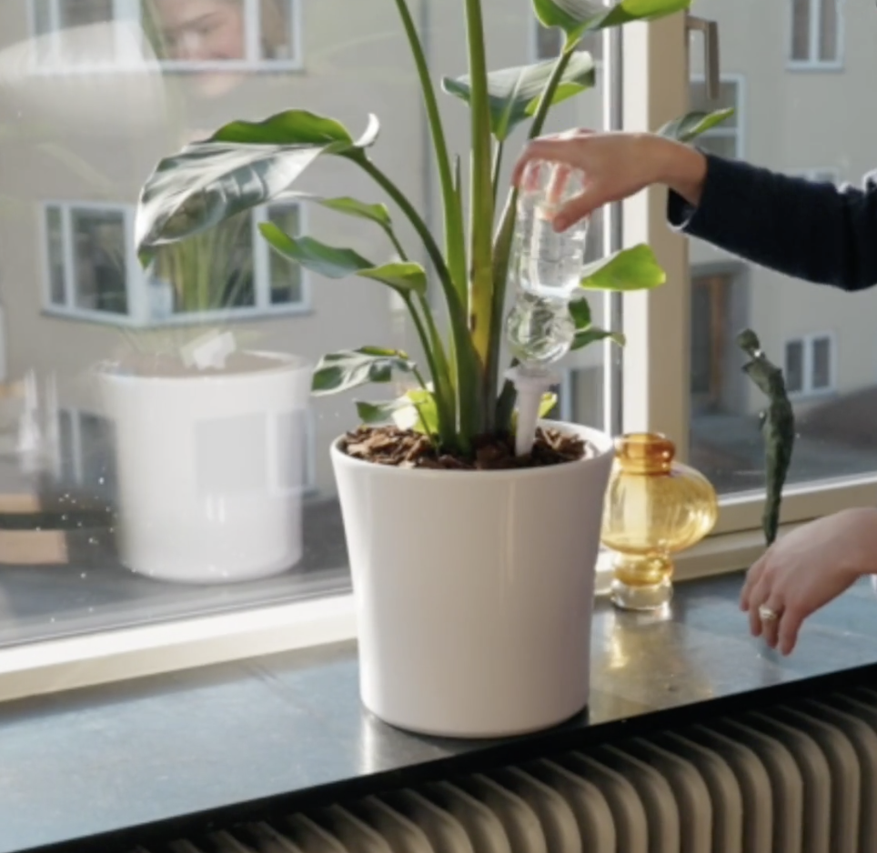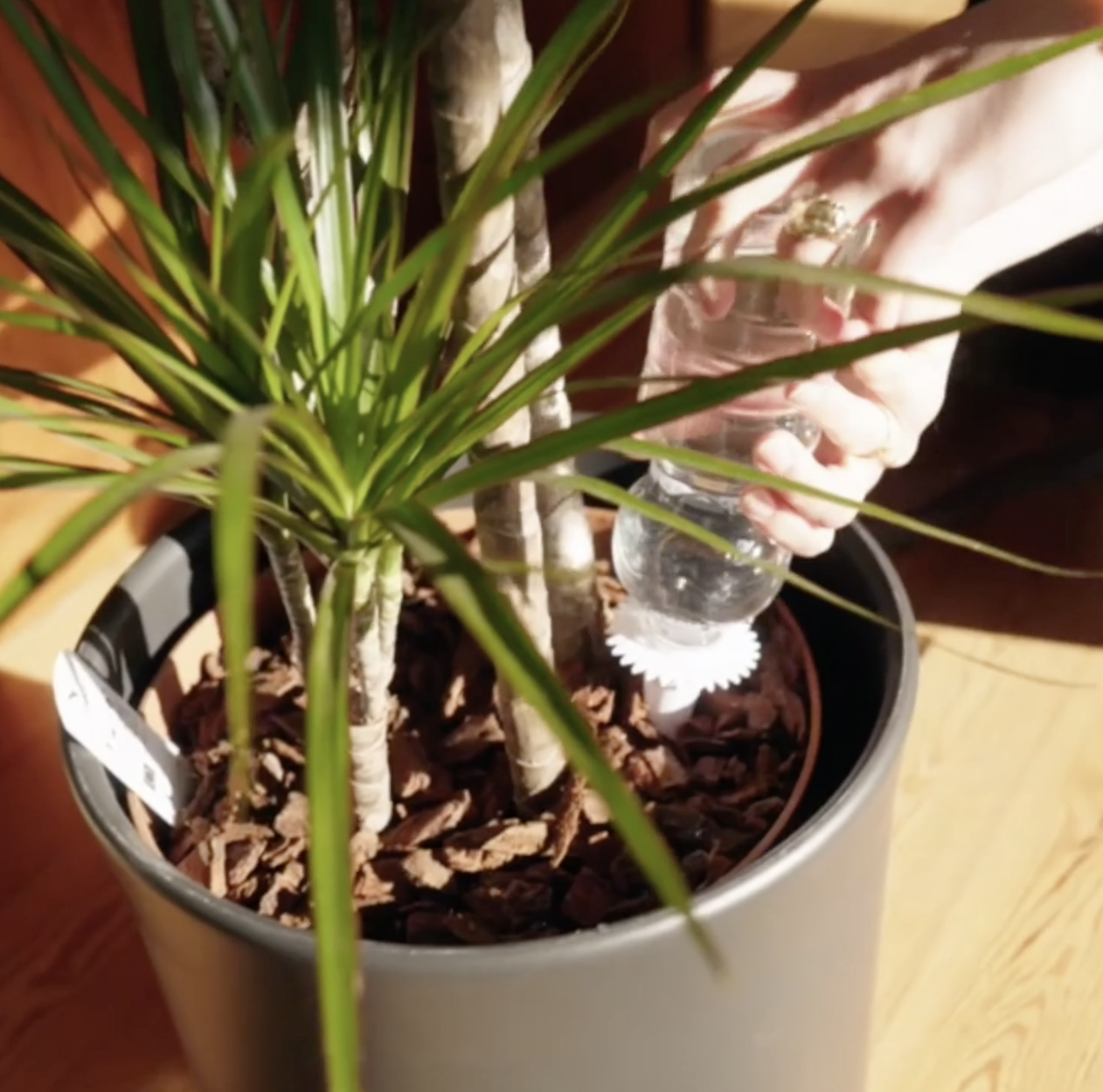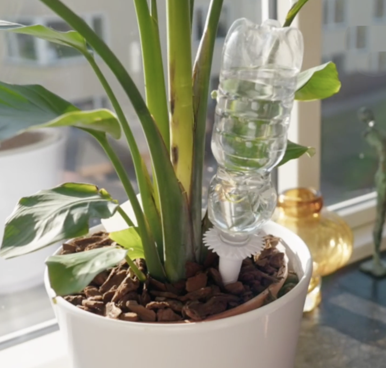 Fyld en flaske med vand og skru den på spydet - Nu kan du stikke spydet i jorden på den plante og så sørger den for at holde jorden fugtig! 🤩