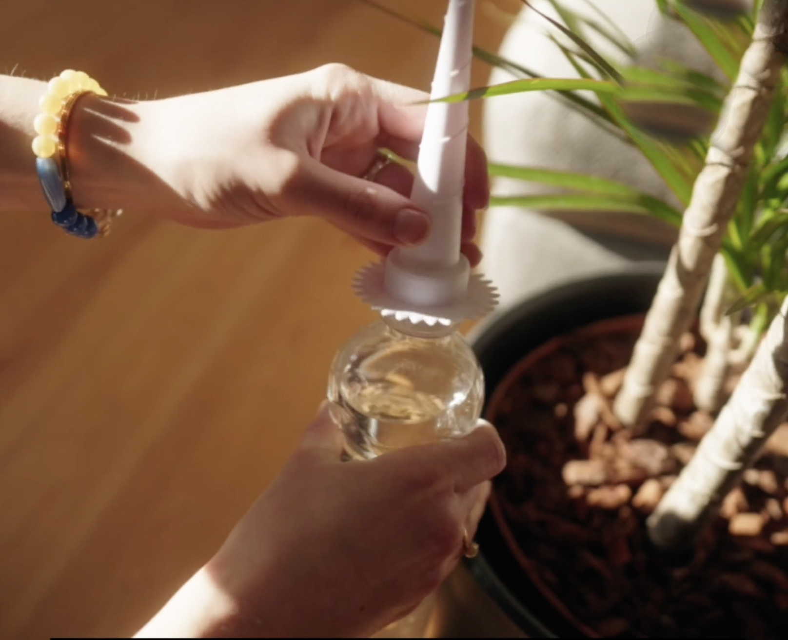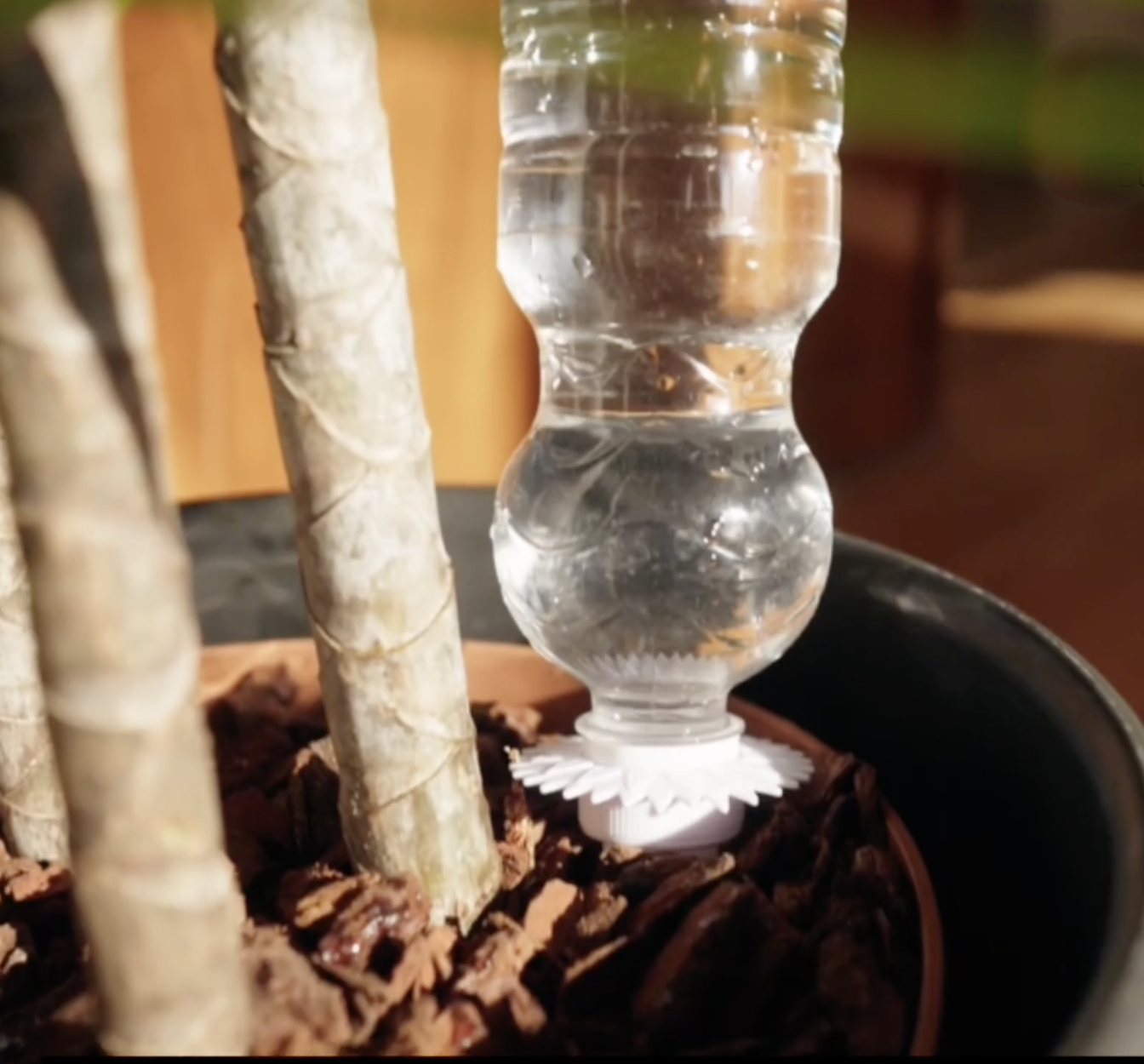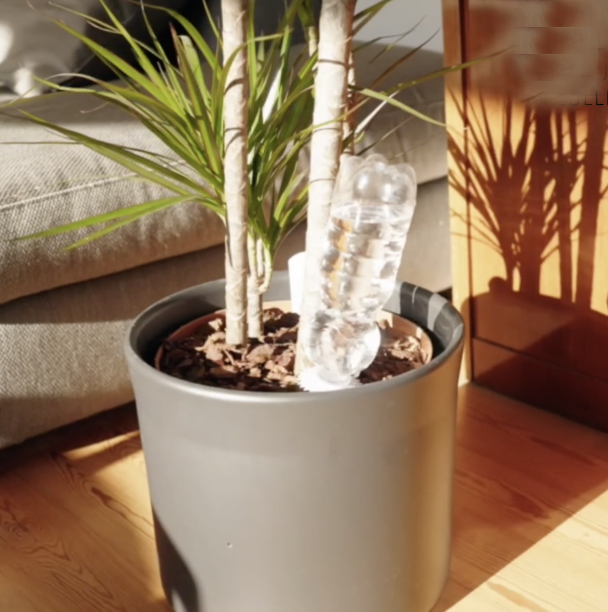 Fyld en flaske med vand og skru den på spydet - Nu kan du stikke spydet i jorden på den plante og så sørger den for at holde jorden fugtig! 🤩
