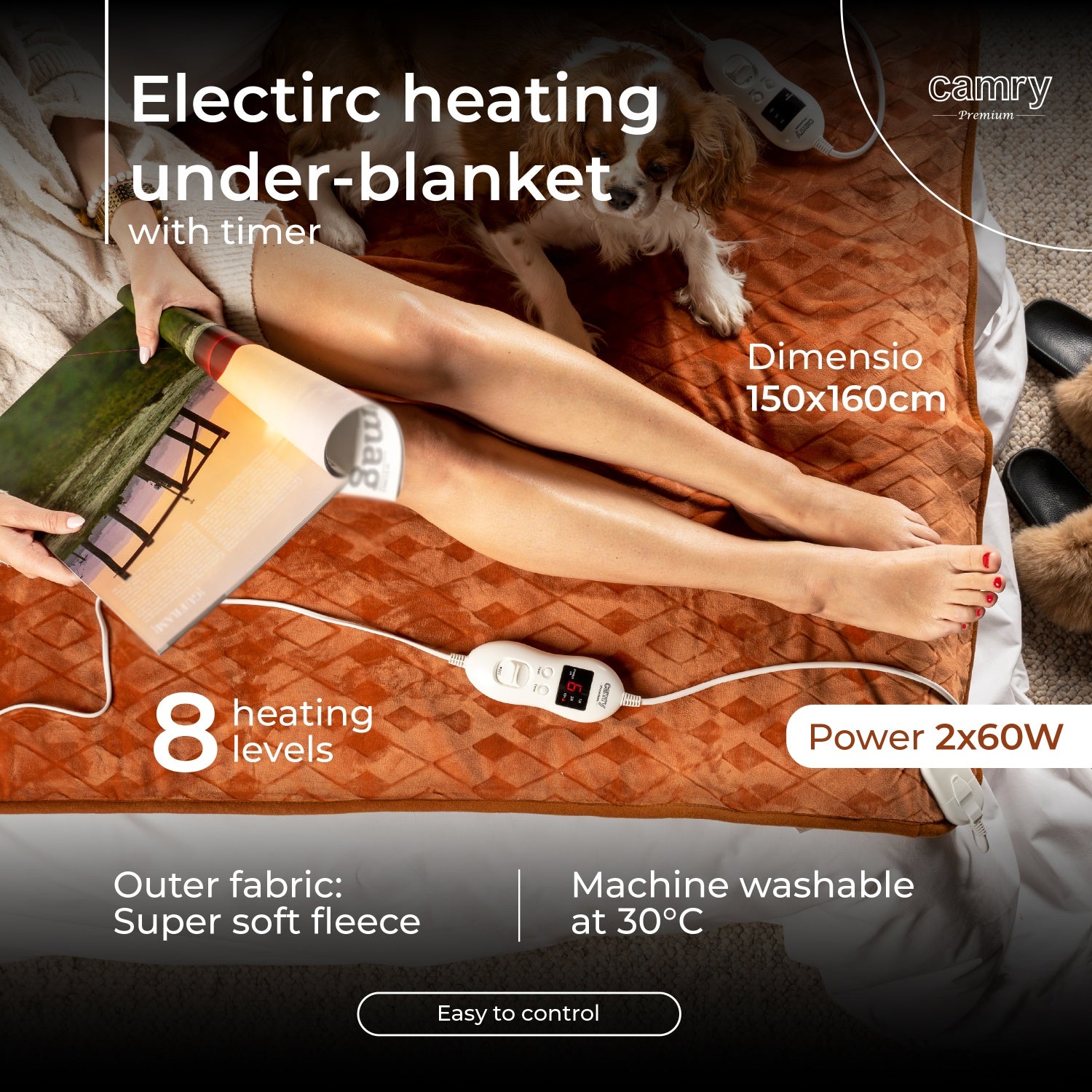 Varmetæppe 160 x 150 cm dobbelt, med Timer – Superblødt fleece & 8 varmeindstillinger (2 x 60W)