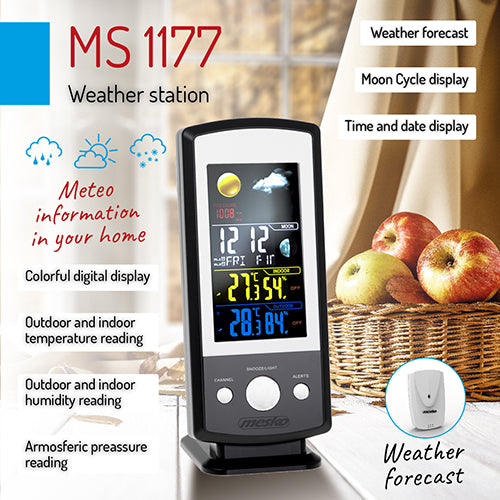Følg vejret og temperaturen præcist med denne vejrstation – en smart og moderne løsning til hjemmet, som hjælper dig med at planlægge dagen bedre. Med et farve digitalt display og mange nyttige funktioner, får du overblik over både vejr, temperatur, luftfugtighed og mere – både inde og ude.