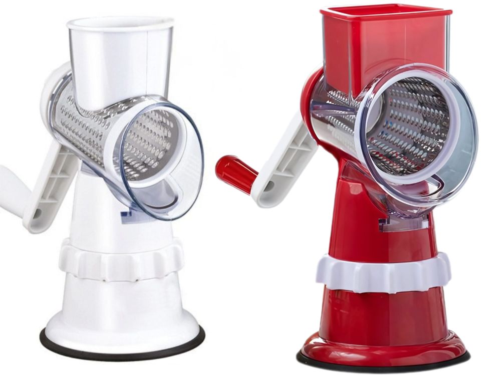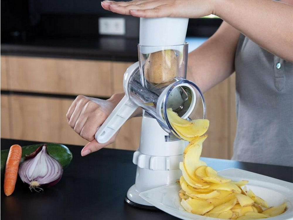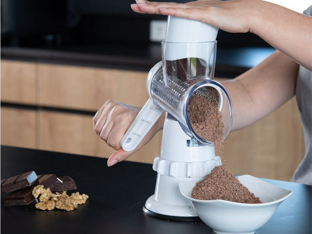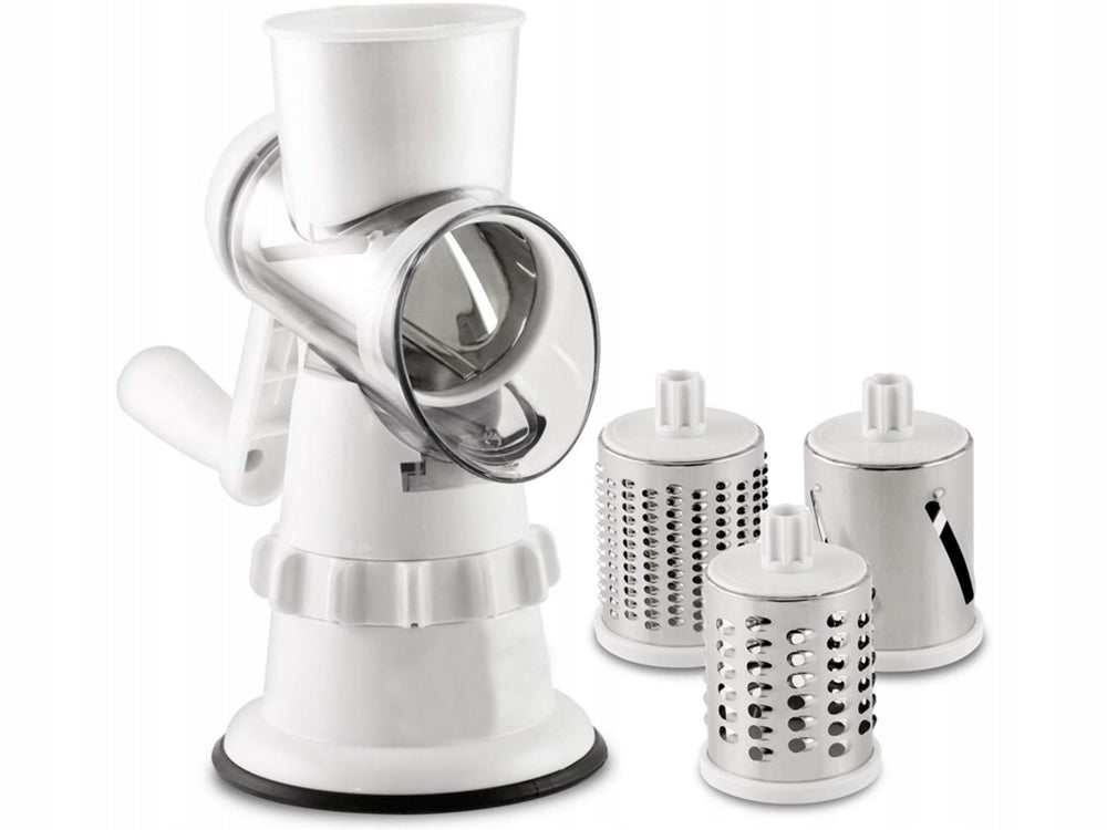 ⚙️ Tre utbytbara trummor – Flexibel funktionalitet Innehåller tre trummor, var och en med sin egen specialfunktion – för fint, grovt och skivat resultat. Perfekt för allt från grönsaker och frukt till snacks och pålägg.