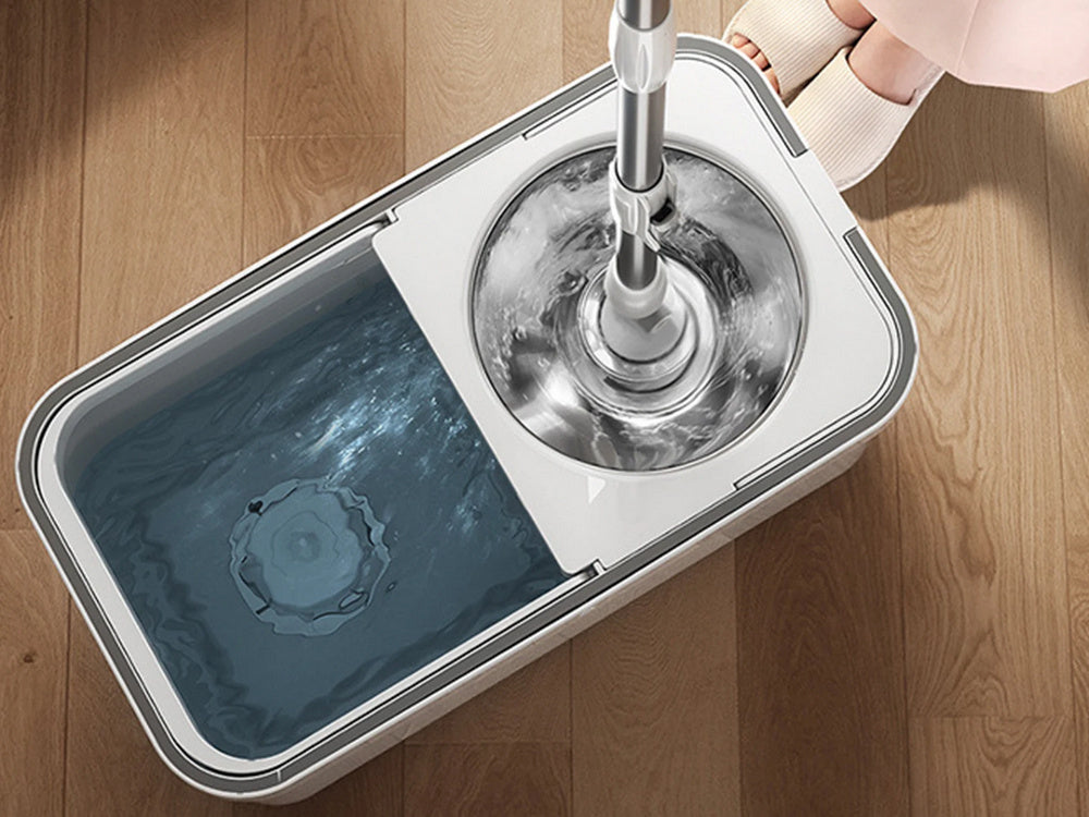 Skopans tvåspindliga system gör att du snabbt och noggrant kan skölja och snurra mopphuvudet, så att du alltid har en ren mopp redo att användas.