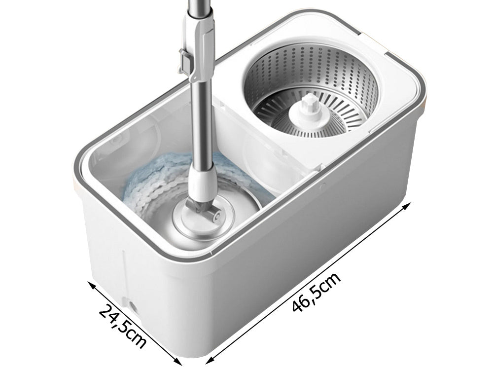 Med ett roterande mopphuvud som kan nå även de svåraste områden, ser 360-moppen till att hela ditt hem blir gnistrande rent och doftar fräscht. Den teleskopiska stången med vridmekanism gör det möjligt att rengöra golv på svåråtkomliga områden med mopphuvudet inställt i 90° vinkel.