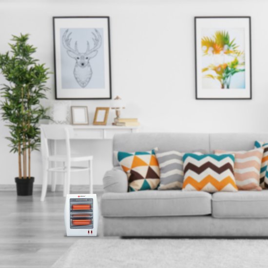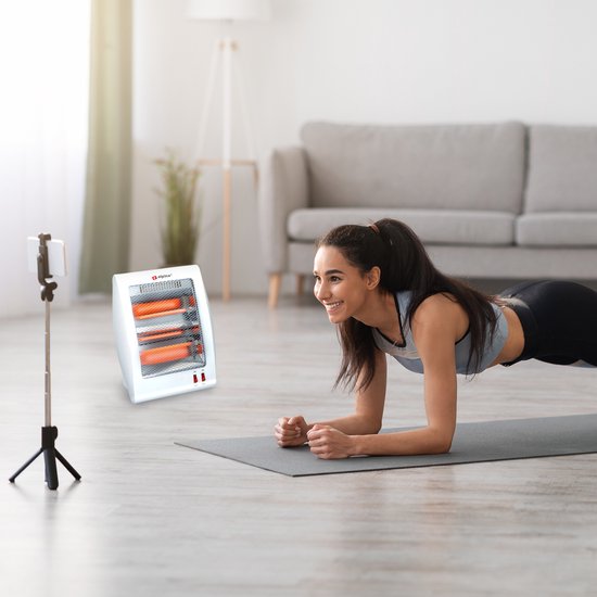 🔥 Två värmeinställningar Kvartsspisen är utrustad med två värmeinställningar på 400W respektive 800W som du enkelt kan justera efter behov. De två värmeelementen, säkert placerade bakom ett skyddsgaller, börjar genast avge värme så snart du slår på apparaten.