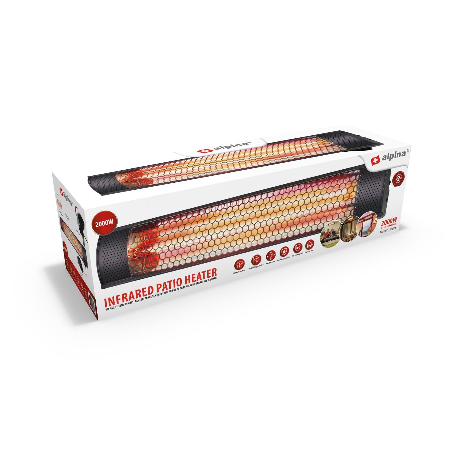 Alpina terrassvärmare - infraröd uppvärmning - IP55 damm- och vattenskyddad - 2000W