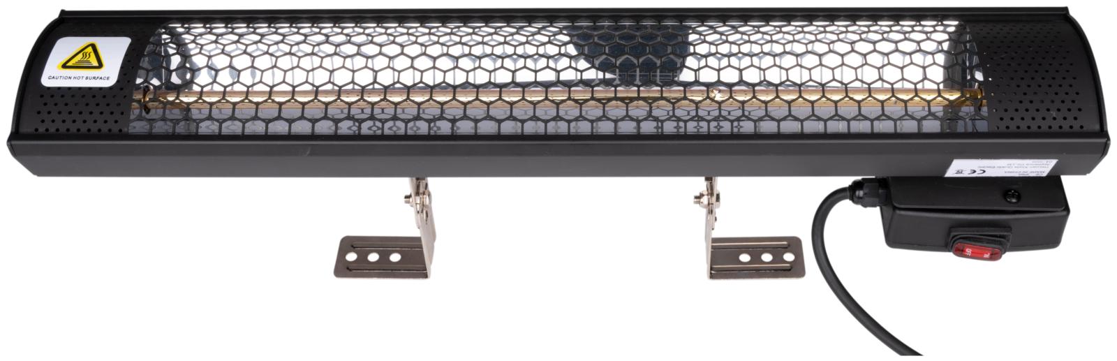 Terrassvärmaren levereras med en monteringssats bestående av fästen och skruvar, så att du enkelt kan hänga den på väggen eller i taket. Med en storlek på ca. 57 x 11,5 x 11 cm och väger endast 1,35 kg, den tar minimalt med plats och kan vinklas för optimal värmefördelning.