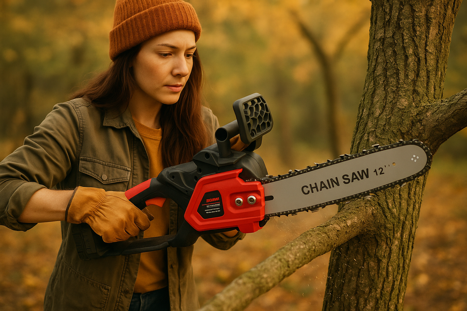 🔋 Trådlös rörelsefrihet Med en batteridriven motorsåg behöver du inte oroa dig för att köpa bensin eller hantera sladdar. Allt du behöver göra är att ladda batteriet för att komma igång.