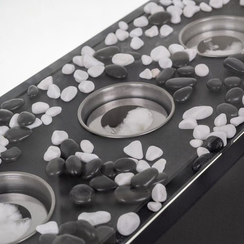 Skapa den perfekta atmosfären både inomhus och utomhus med denna snygga "KAMINER Fristående Biokamin med Dekorstenar". Med sin rökfria förbränning, eleganta glasdesign och inkluderade vita och svarta stenar får du både värme och estetik i ett. Kaminen drivs med bioetanol och är idealisk för vardagsrummet, terrassen, sovrummet eller kontoret.