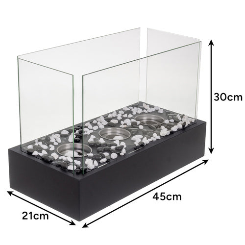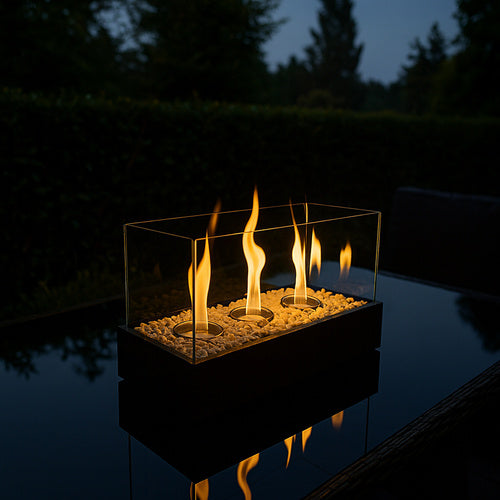 🔥 Säkert flamskydd Fyra glaspaneler omger lågan och skapar en säker miljö – skyddar mot både drag och oavsiktliga beröringar. Perfekt för hem med barn eller husdjur.
