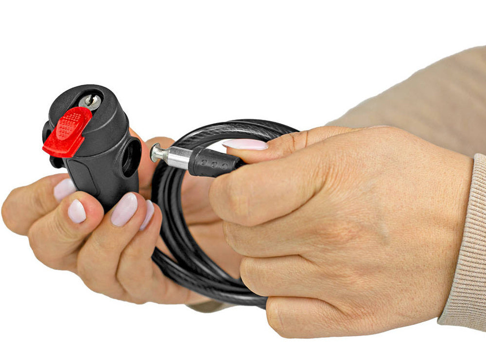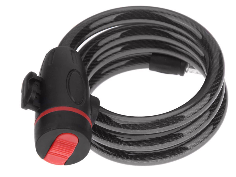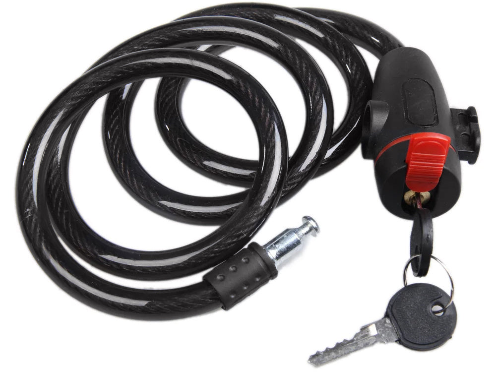 🔒 Solid och säker konstruktion Den 120 cm långa stålvajern har en diameter på 10 mm och är täckt med en stark silikonbeläggning som förhindrar repor på cykeln.