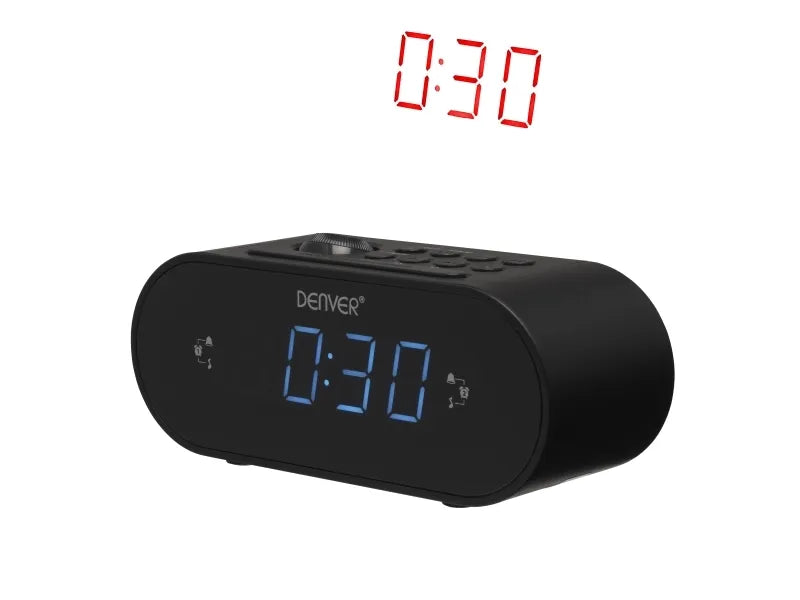 Upplev bekvämligheten med Denver Alarm Clock med Projects och inbyggd radio, som kombinerar stil och funktionalitet. Denna digitala klockradio är utrustad med en tydlig 1" LED-skärm och en praktisk projektor som projicerar tiden på väggen eller taket. Perfekt för både sovrummet och kontoret.