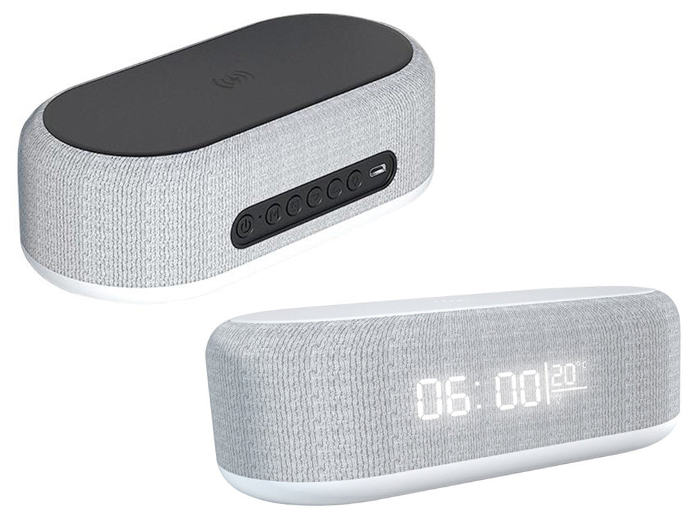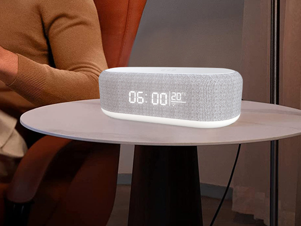 📱 Induktionsladdare Ovanpå klockan hittar du en inbyggd trådlös laddare som stöder snabb och säker laddning av Qi-kompatibla smartphones med upp till 15W effekt. Du slipper krånglet med kablar och kan enkelt ladda din telefon direkt från nattduksbordet.
