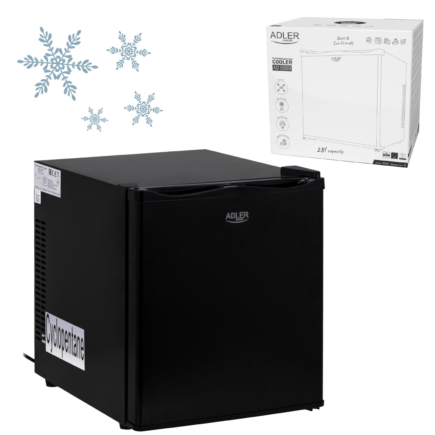 🖤 Snygg och elegant design Med en helsvart ytterdörr och mjuk LED-belysning inuti ser kylboxen både modern och diskret ut. Den kommer att inreda vilket rum som helst.