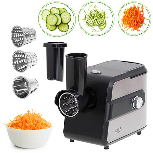 🥕 Grøntsagsriver med 3 Blade Skær nemt grøntsager i tynde chips, grove strimler eller skiver. Ideel til salater, gratiner og tilbehør – eller når du vil spare tid på madforberedelsen.
