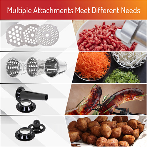 🌭 Inkluderet Pølse- og Kebbe-Tilbehør Lav hjemmelavede pølser og lækker kebbe med det medfølgende tilbehør. Giver dig mulighed for at eksperimentere med smage og tage kontrol over, hvad din mad indeholder.