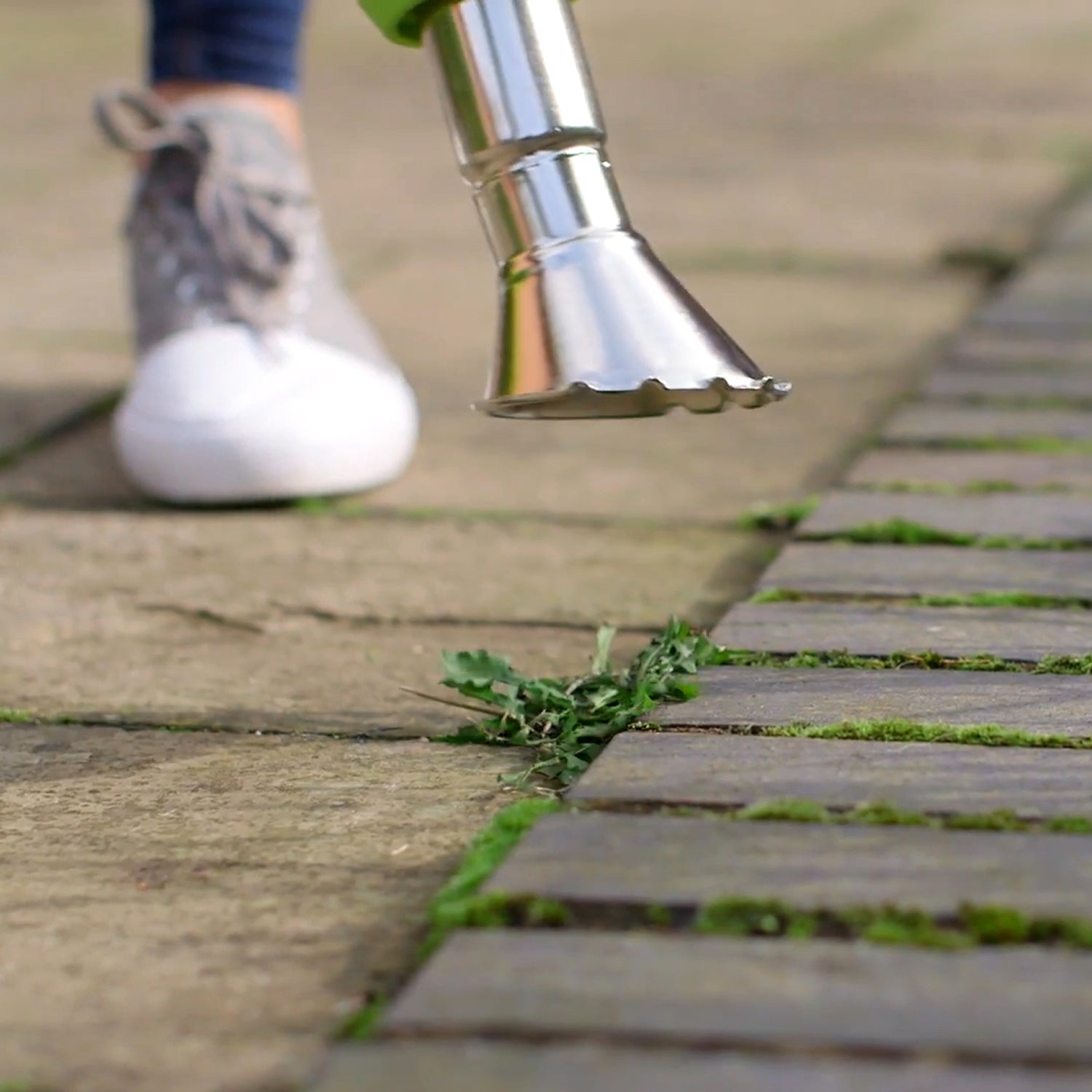 - För att ta bort ogräs, håll munstycket över ogräset i cirka 5 sekunder. Under dessa 5 sekunder förstörs ogräsets cellstruktur. Som ett resultat dör ogräset inom några dagar.