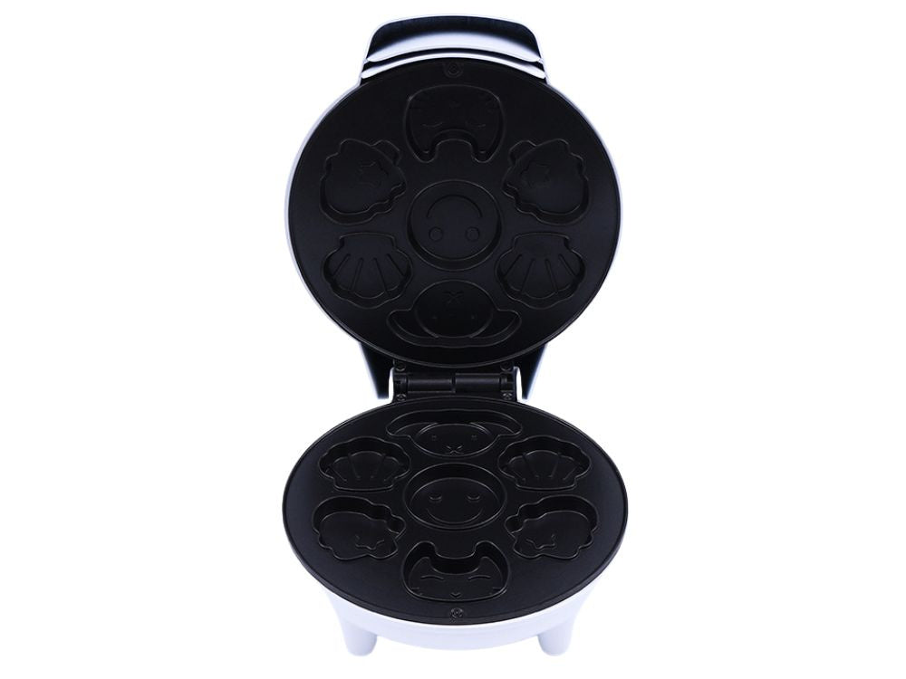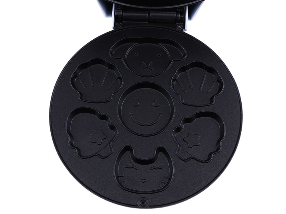 Gör bakningen roligare med detta elektriska våffeljärn och kakjärn, som skapar läckra våfflor och kakor i roliga former! Med motiv som katt, hund, snäckskal, julgran och smiley är varje portion både god och underhållande – perfekt för barn och de med ett barnhjärta.