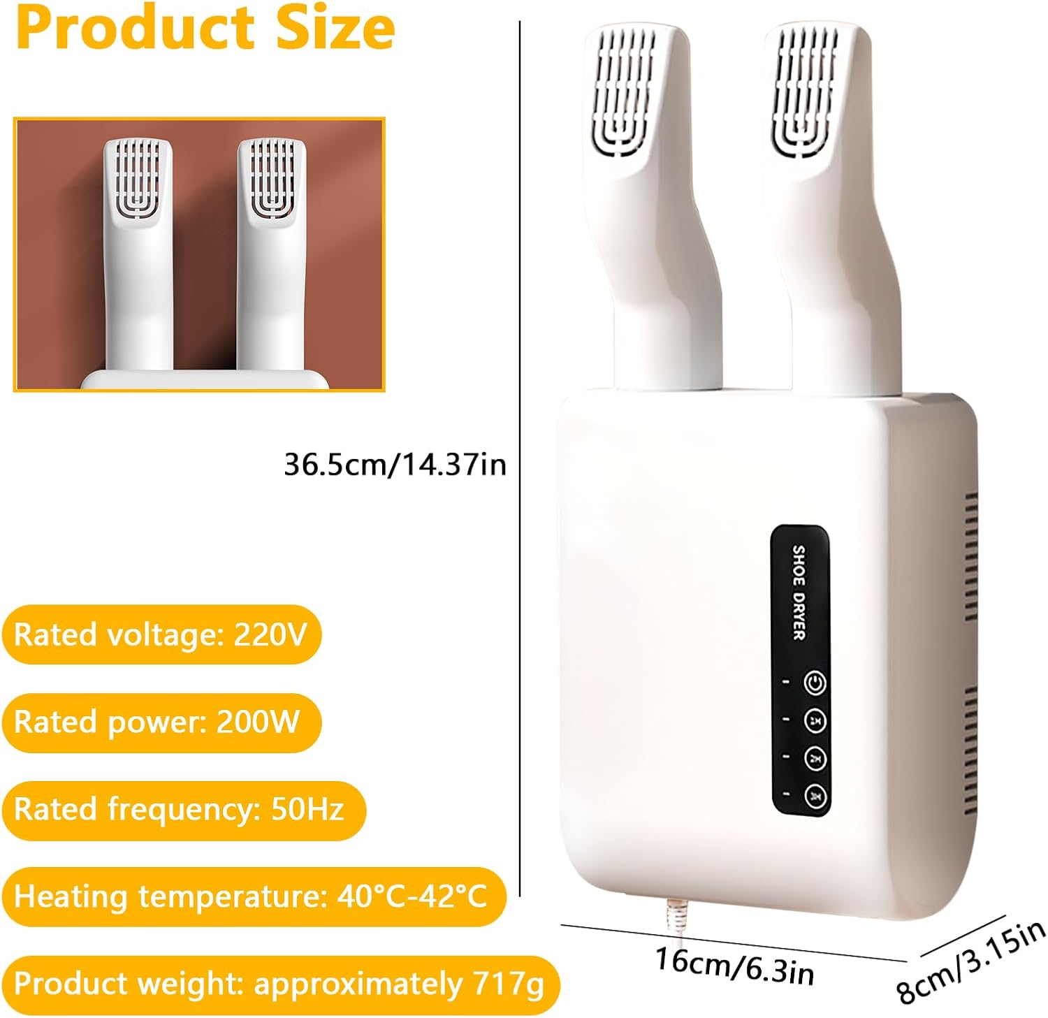 Säg adjö till blöta och kalla skor med denna smarta "Elektriska Sko- och Fotvärmare med Timer". Perfekt för både hemmet och kontoret, den väggmonterade värmaren säkerställer snabb torkning av sko. . .