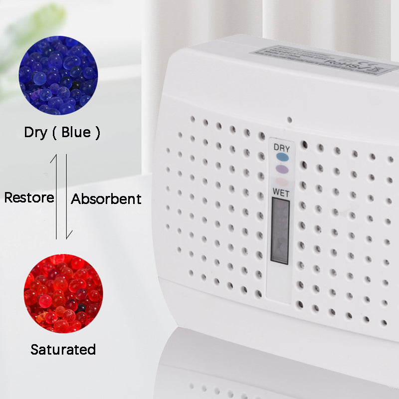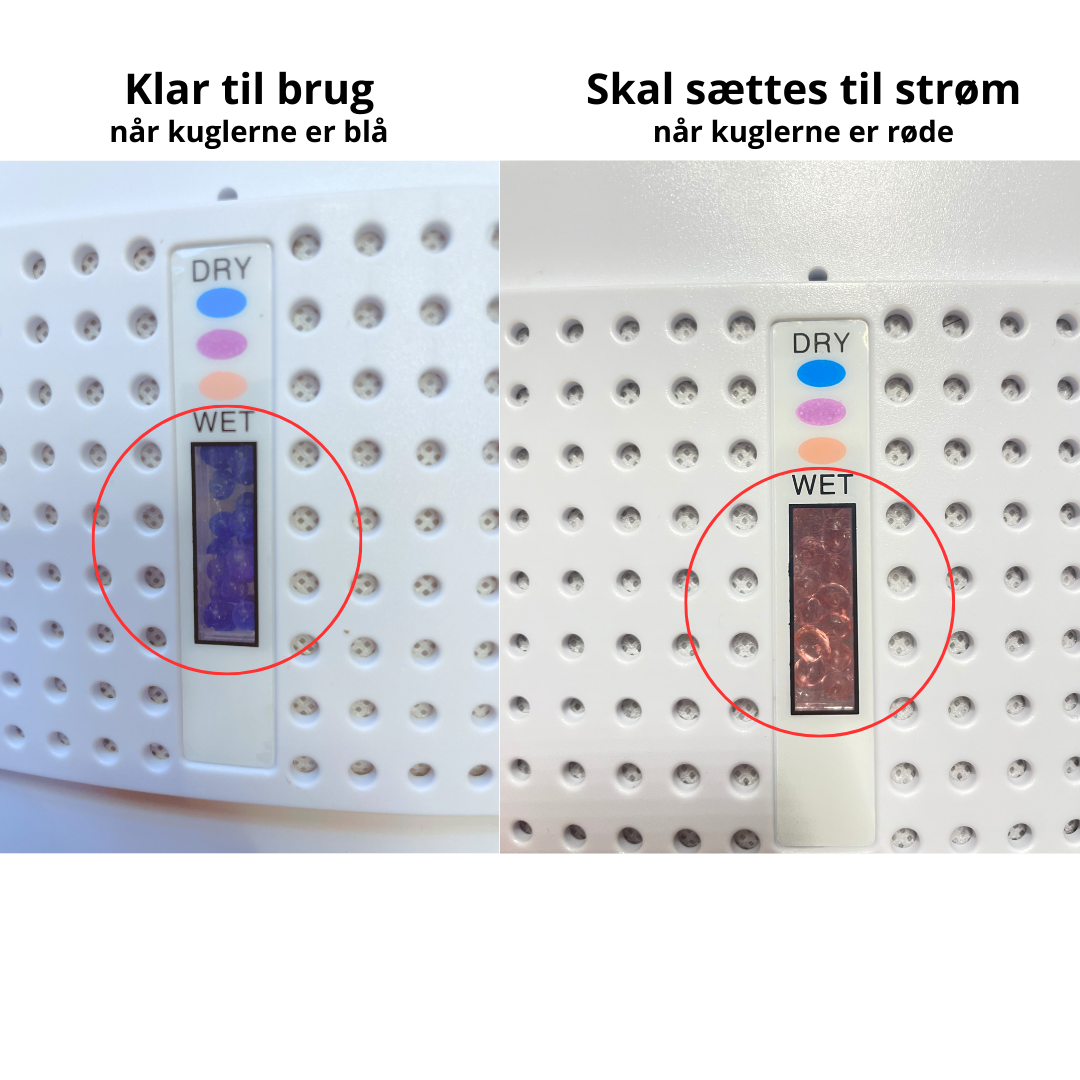 1. När du får avfuktaren är den redo att användas. Du kan se detta genom att kontrollera om kulorna i det lilla fönstret i mitten på båda sidor är mörkblå.