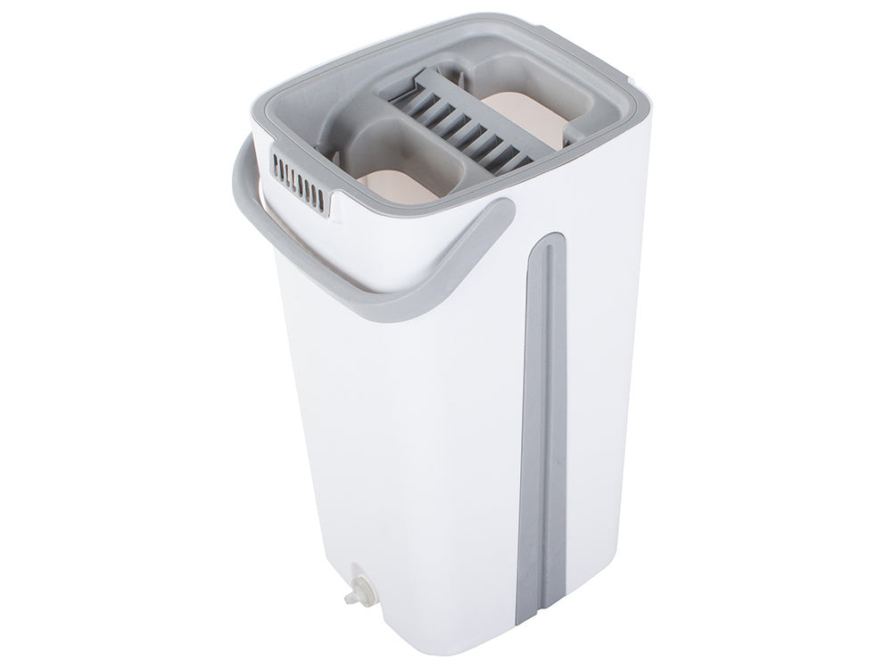 🧼 Innovativt tvåkammarsystem Den unika tvåkammarhinken med inbyggd vridmekanism ser till att du alltid tvättar golvet med rent vatten, samtidigt som smutsigt vatten hålls separat. Detta system säkerställer en mer hygienisk och effektiv rengöring.