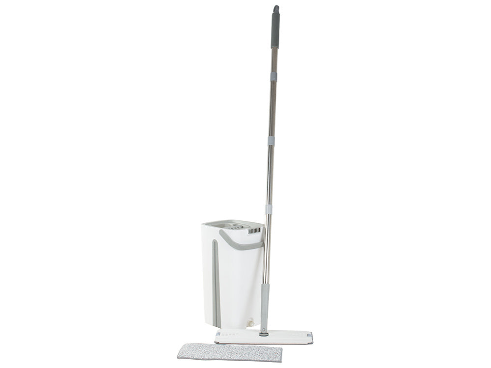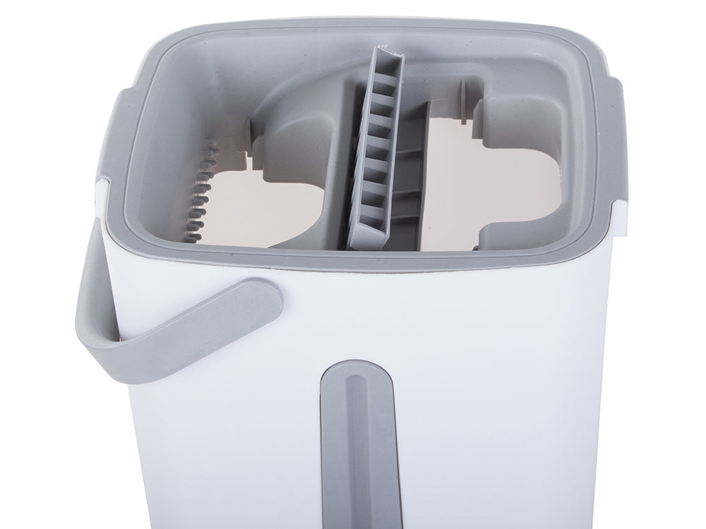 Gör rengöringsprocessen snabbare och effektivare med vår "Plattmopp med tvåkammarsvänghink". Designat för att göra rengöring av alla typer av golv enklare och bekvämare, detta innovativa rengöringsverktyg är idealiskt för att nå de yttersta hörnen av ditt hem.