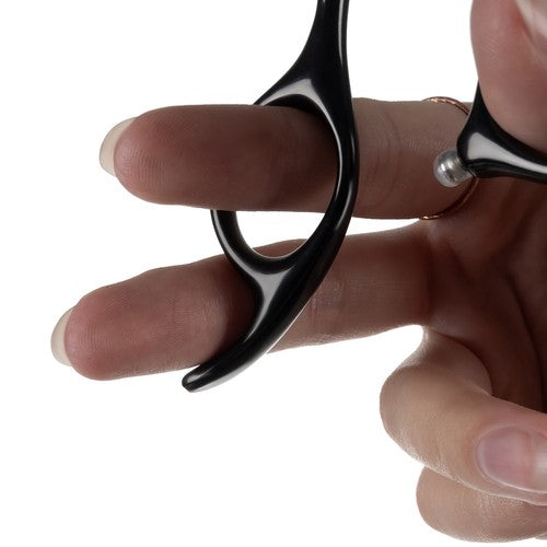ERGONOMISK DESIGN + FINGERSTIL- Frisörsaxar är lätta och ergonomiska, vilket ger dig komfort under långvarigt arbete. Deras korrekt profilerade handtag underlättar ett säkert grepp och exakt manövrering vid skärning . Dessutom har de ett fingerstöd.