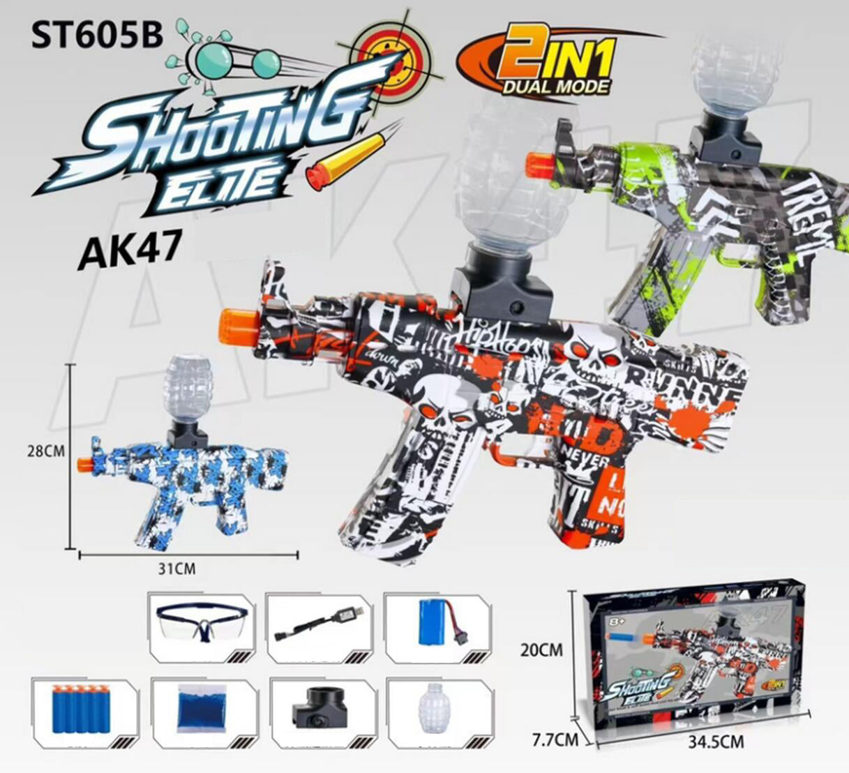 SPECIFIKATION material: plast batteri: 1200mAh drivning: automatisk strömförsörjning: uppladdningsbar gel pärlor kuldiameter: från 7 till 8 mm räckvidd: upp till ca. 15-20 m antal bollar för egen förberedelse: 5000 st ålder: 14+
