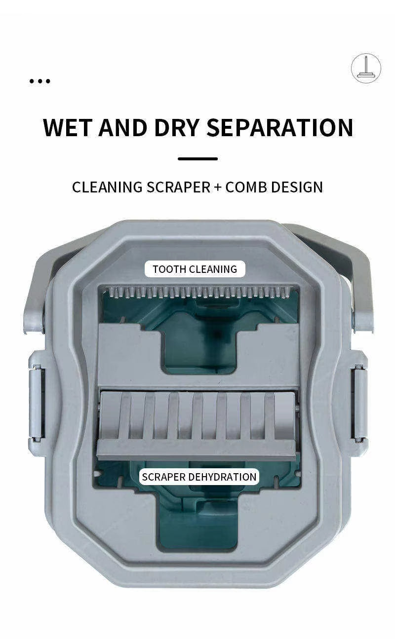 🙌 Handsfree-vridning – inga våta händer Vridmoppen med fyra säten säkerställer 90–100 % effektiv vattenborttagning, så att du inte behöver röra den våta moppen. Bara tryck – och fortsätt direkt.