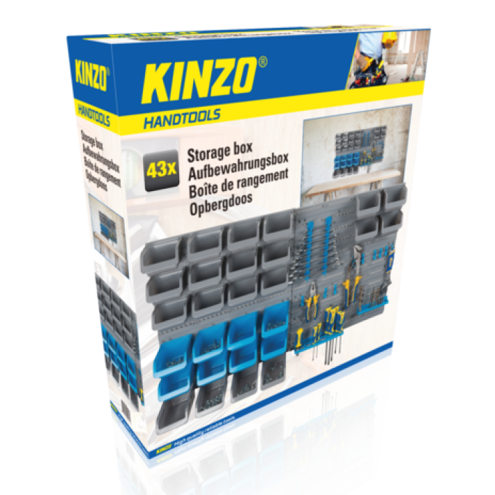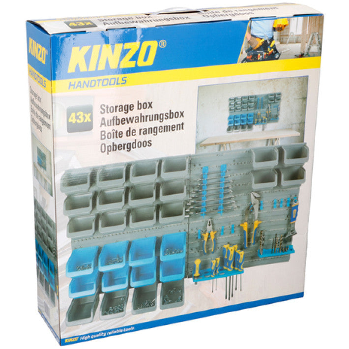 Få kontroll över skruvar, bultar, spikar och andra småverktyg med detta praktiska "Kinzo väggmonterade förvaringsset - 43 delar". Det perfekta valet för dig som vill ha ordning och översikt i verkstaden, garaget eller hobbyrummet.
