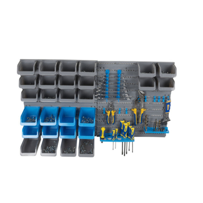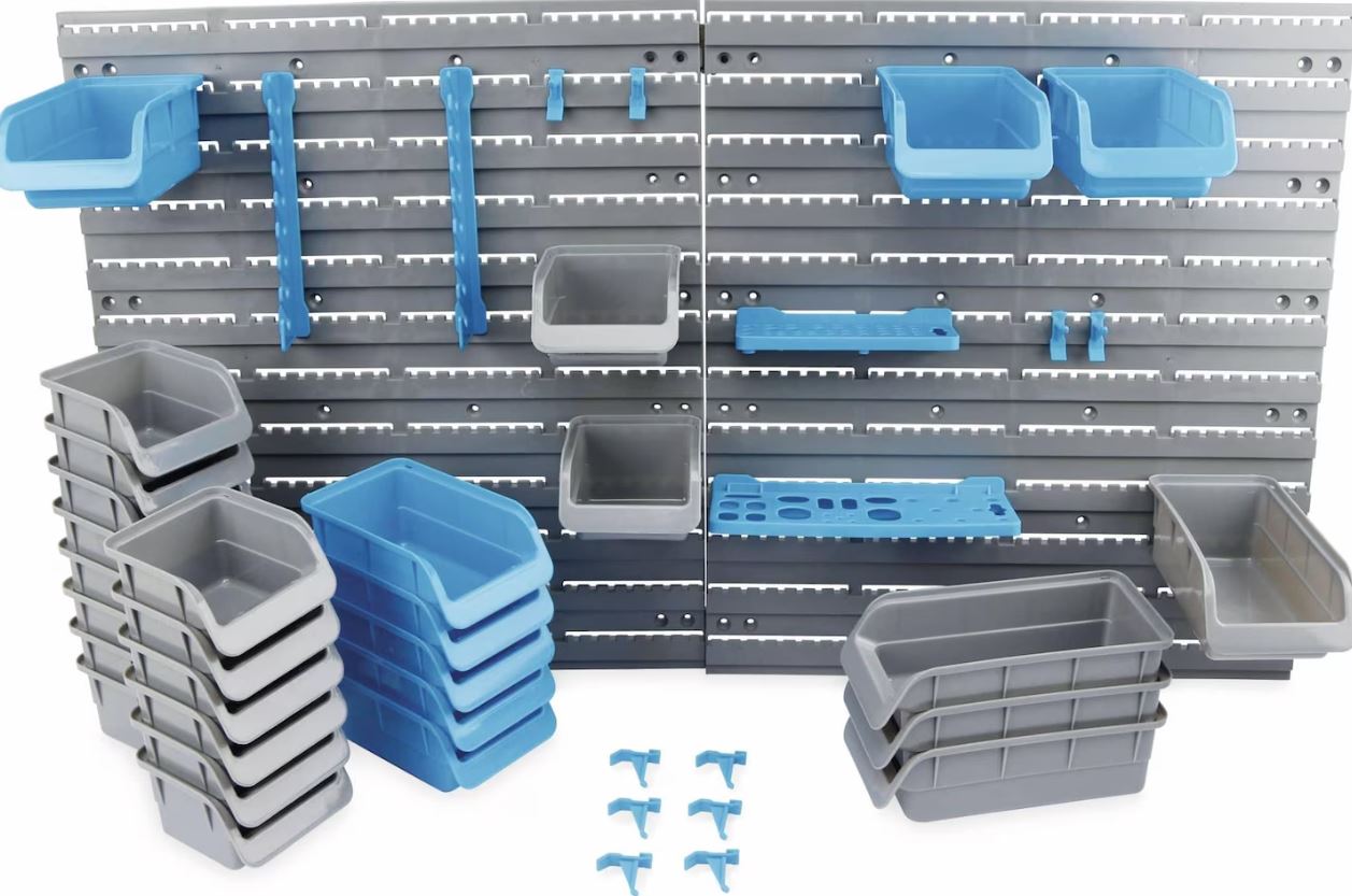 🧰 Allt-i-ett-förvaringslösning Med 43 delar har du gott om plats för smådelar och verktyg. Setet innehåller förvaringslådor i olika storlekar samt väggpaneler så att du enkelt kan organisera efter behov.