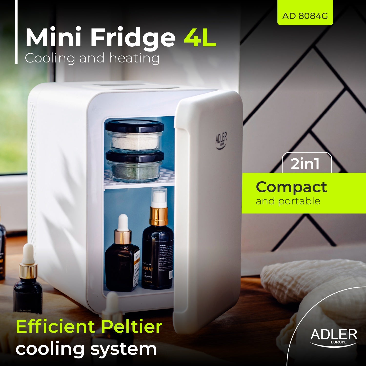 🧳 Kompakt och bärbar Med en kapacitet på 4 liter och ett bärhandtag är detta minikylskåp enkelt att ta med sig på språng. Det får enkelt plats i små utrymmen som sovrummet, kontoret, bilen eller husvagnen.