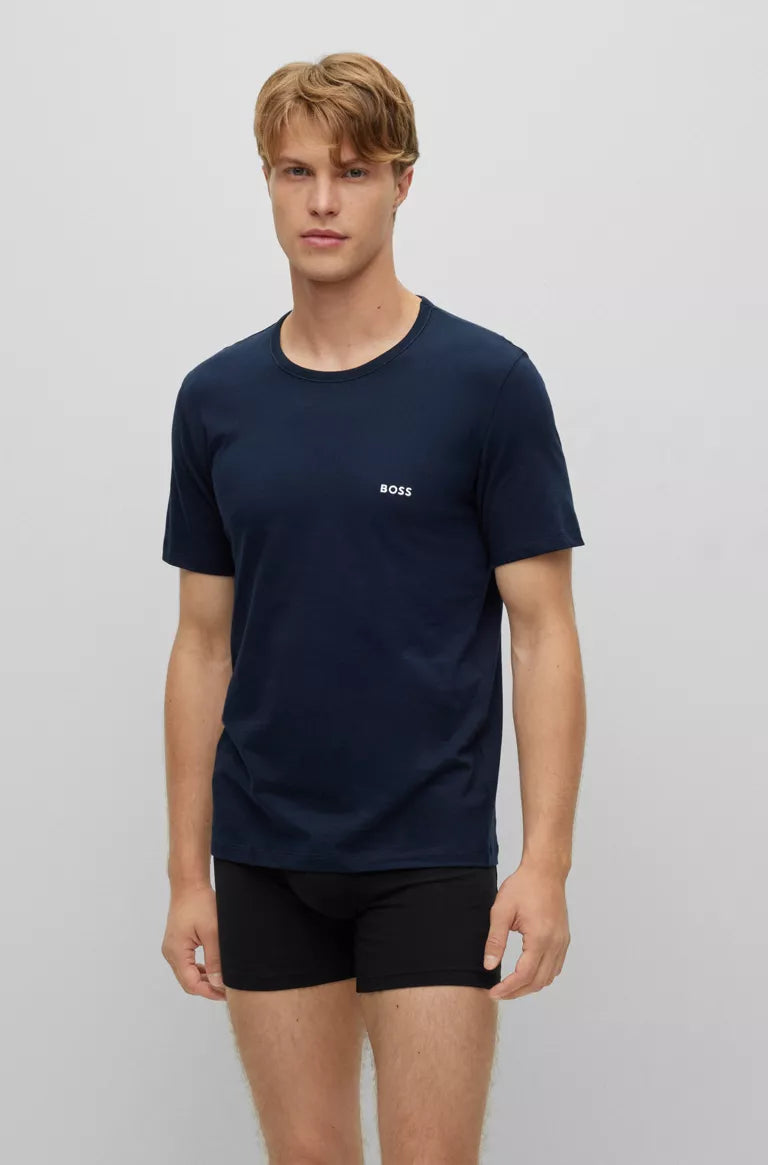 3 st. vackra underkläder T-shirts med rund hals från HUGO BOSS. De 3 t-shirtarna har en broderad logotyp på vänster bröst. Dessa t-shirts har en passform med normal passform i ren bomullsjersey för naturlig komfort.