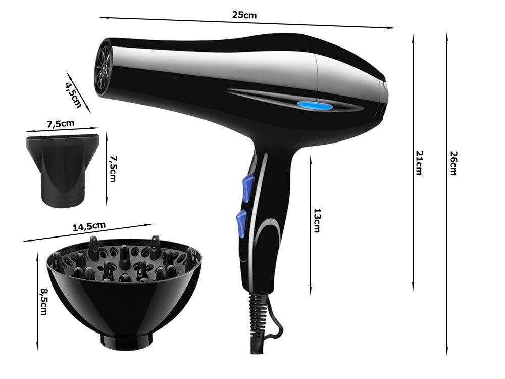 🎯 Diffusor och koncentrator ingår ✅ Diffuser: Perfekt för att framhäva naturliga lockar och ge volym från rötterna. ✅ Koncentrator: Smalt munstycke som fokuserar luftflödet för exakt styling och plattning.