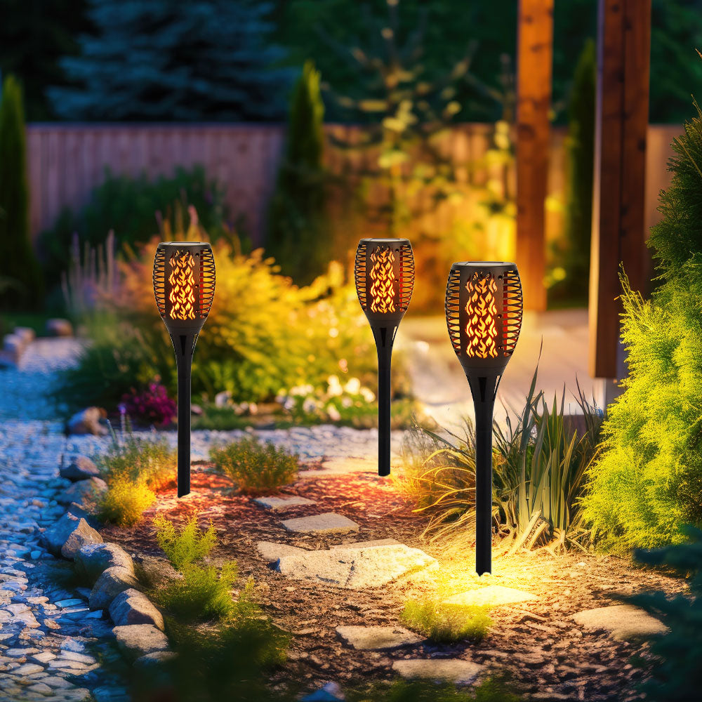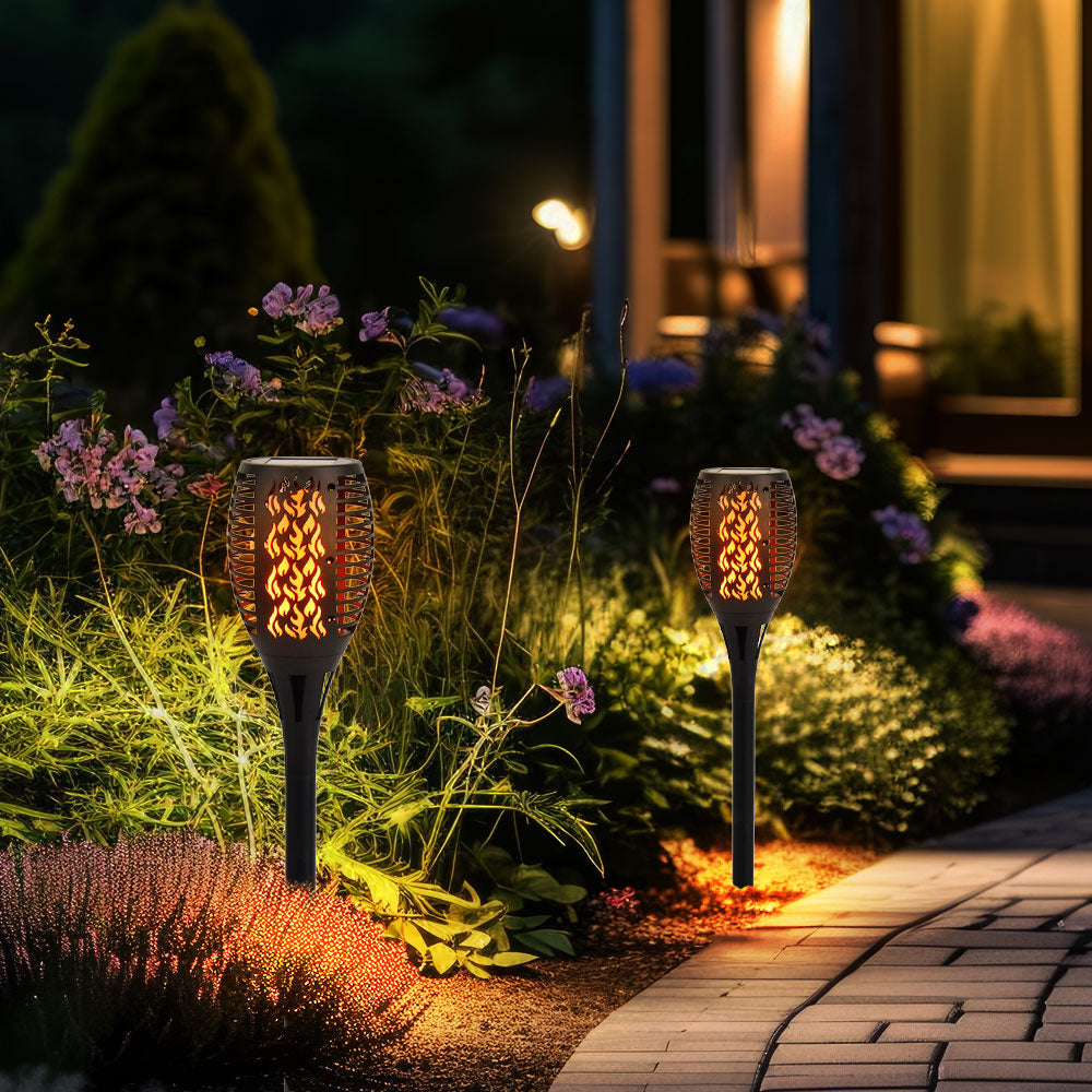 Våra "LED Solar Lamps with Flame Effect" är den perfekta lösningen för alla som vill lägga till en magisk atmosfär till sin trädgård samtidigt som de är miljövänliga och sparar på elräkningen. Med dessa lampor kommer din trädgård att se fantastisk ut både dag och natt!