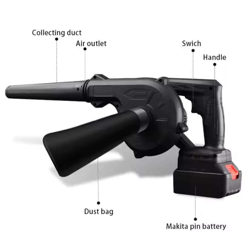 Med denna luftblås får du en pålitlig och mobil lösning som gör jobbet snabbt och effektivt – utan krångel med sladdar!