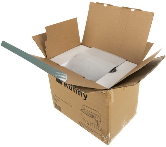 Tillbehören placeras i polystyrenfördjupningen på sidan av kartongen.