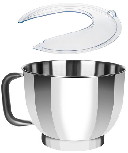 🍰 Stor skål med stänkskydd Den medföljande 4,5-liters skålen är tillverkad av rostfritt stål och har ett praktiskt handtag som gör den enkel att hantera. Stänkskyddet håller köket rent – även vid högsta hastighet.