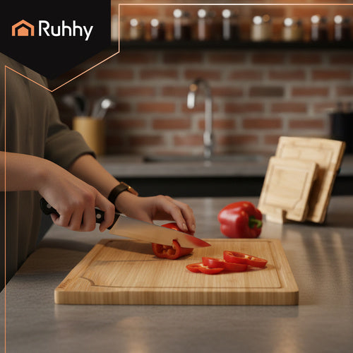 Brädorna är tillverkade av hållbar bambu, som är både slitstarkt och hygieniskt. Bambu suger inte åt sig lukt eller vätska och torkar snabbt, vilket gör det till ett perfekt val för daglig användning.