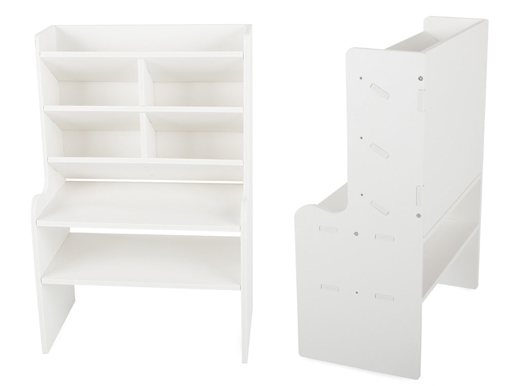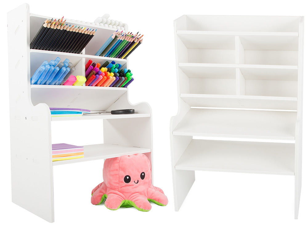 De många facken och hyllorna ger gott om utrymme för att hålla dina kontorsmaterial organiserade och inom räckhåll. Perfekt för både vuxna och barn som vill ha en snygg arbetsyta.