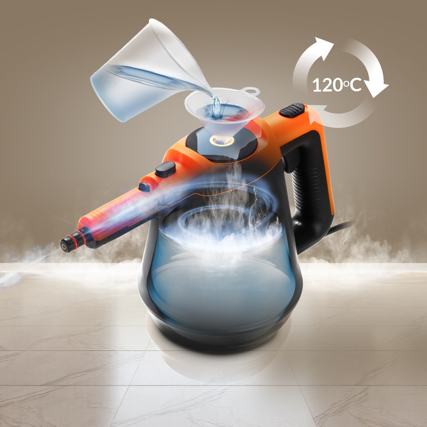 Få gnistrande rena ytor med denna "smarta ångrengörare" som kombinerar kraften från ånga med mångsidiga tillbehör. Med en effekt på upp till 1500W och ånga på upp till 120°C är denna ångtvätt idealisk för effektiv rengöring i hemmet eller bilen. Den tar bort envis smuts, minskar dammkvalster och når även svåråtkomliga områden.