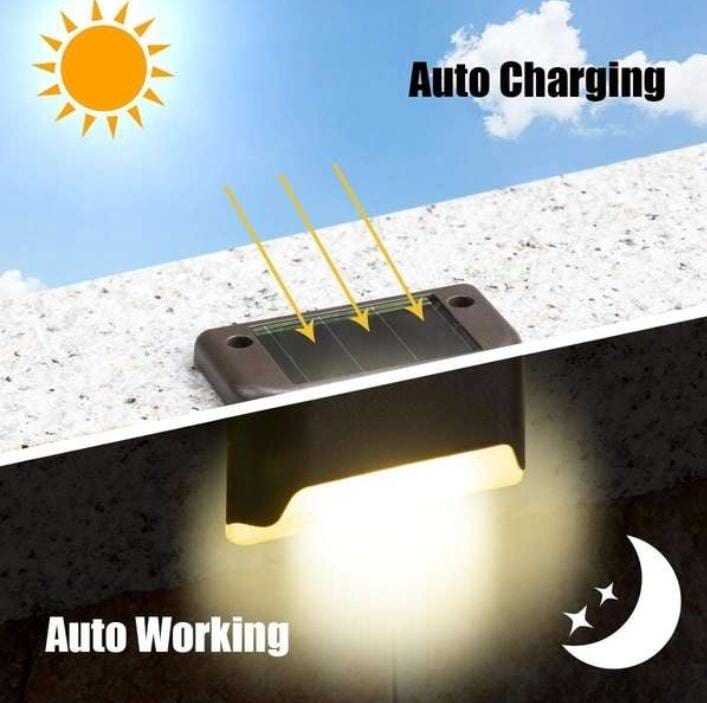 Effektiv solenergi: Gör dina utomhusområden inbjudande med våra smarta 4-pack solcellsdrivna LED-trapp- och staketlampor. Solcellsdrivna och energieffektiva, dessa lampor erbjuder en praktisk och miljövänlig lösning för att lysa upp dina utomhustrappor och gångvägar. ☀️🌿