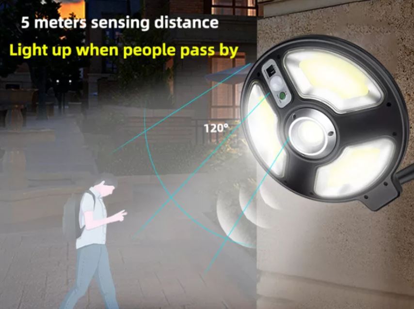 Med inbyggda skymnings- och rörelsesensorer justerar denna solcellslampa automatiskt sin belysning utifrån omgivningen, vilket gör den perfekt för säkerhets- och komfortbelysning.