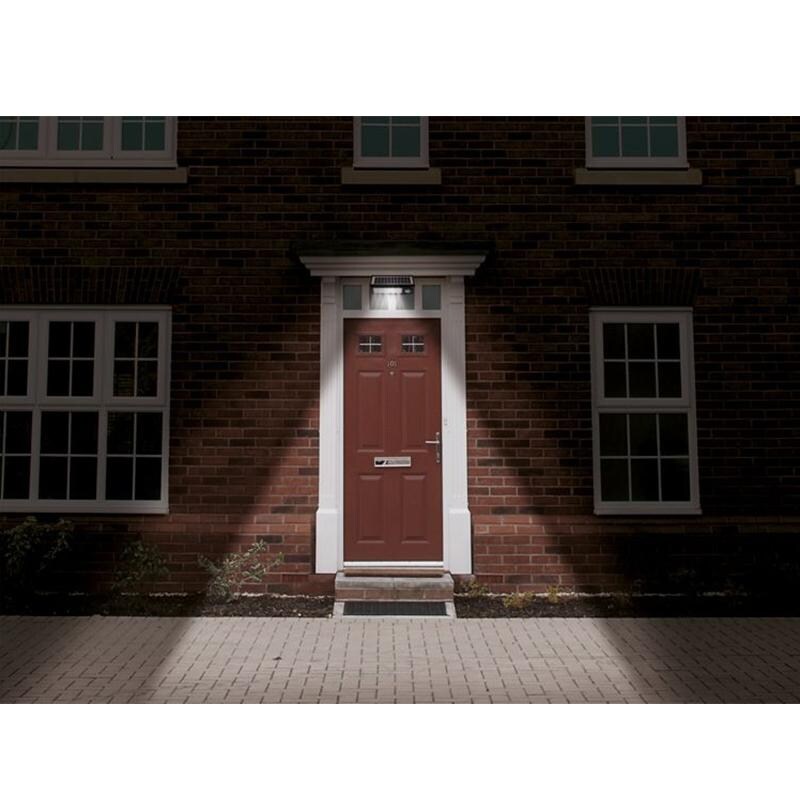 Denna utomhuslampa lyser upp i mörkret och bidrar till ökad säkerhet! Den är utrustad med en rörelsedetektor som aktiveras så fort någon närmar sig huset. Det är praktiskt om du kommer hem sent på kvällen, och kan även avskräcka inbrottstjuvar. Lampan består av 36 LED-lampor och drivs via solceller. Den ger ett varmvitt ljus med en styrka på 320 lumen.