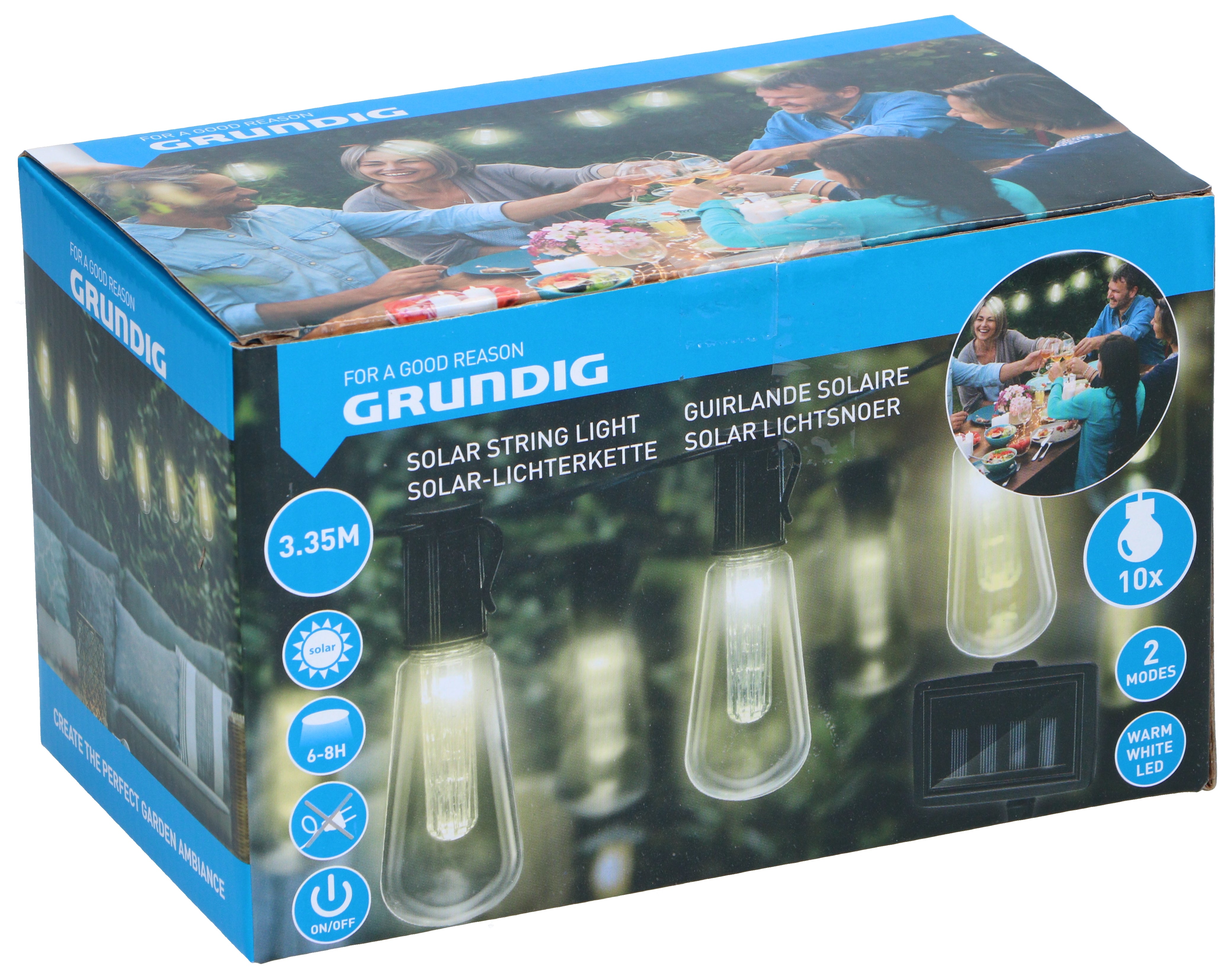 Denna "dekorativa varmvita ljusslinga" är det perfekta sättet att lägga till en touch av magi och värme till dina utomhusområden. Gör dina kvällar ljusare och mer inbjudande med denna vackra solcellsdrivna ljuskedja från Grundig.