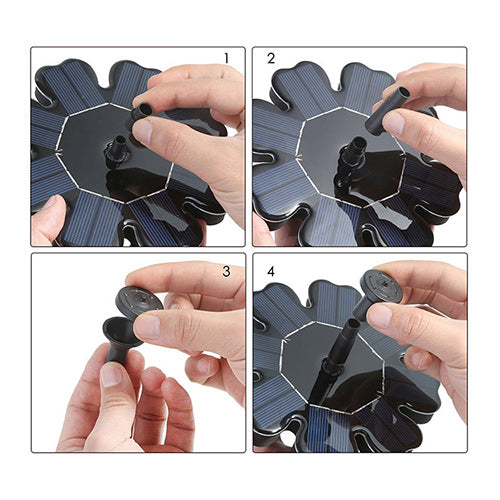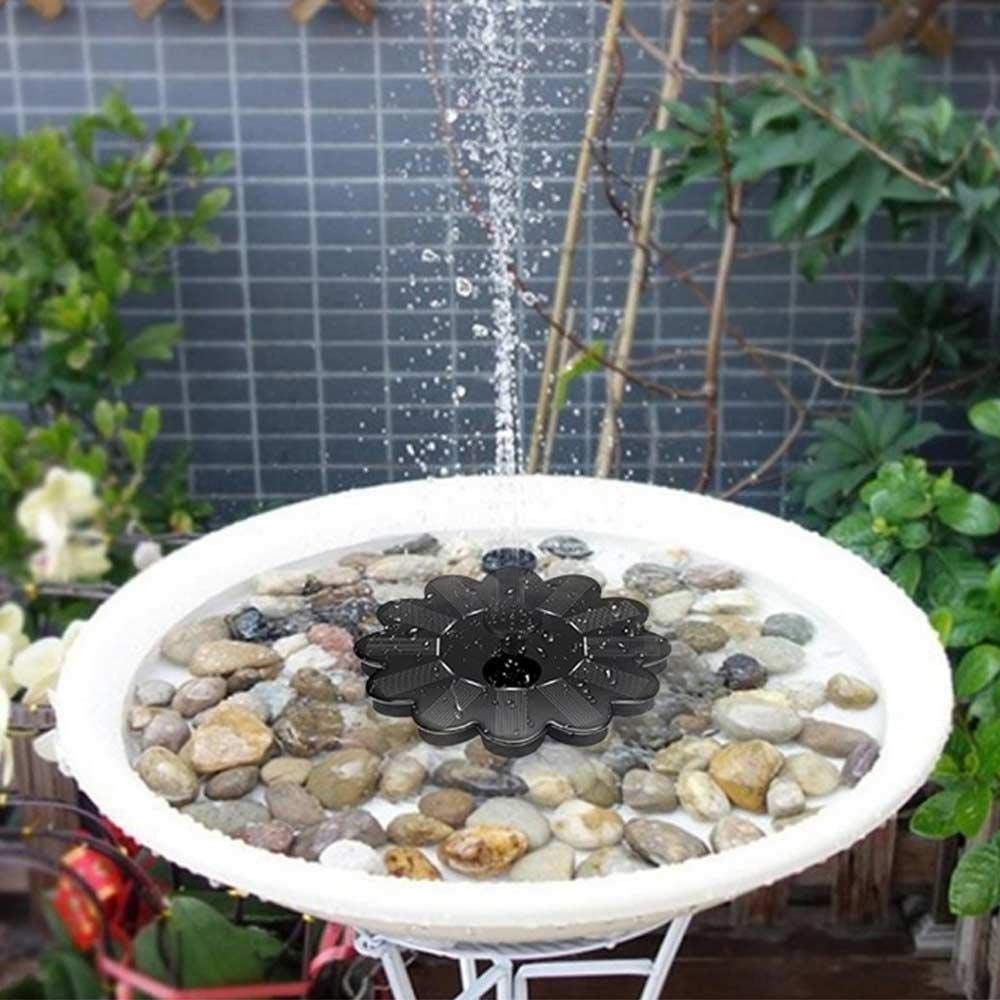 Inred trädgårdspoolen eller fågelbadet med en soldriven fontän. Pumpen sköter sig själv och laddas automatiskt upp av solen. Allt du behöver göra är att placera den i bassängen.