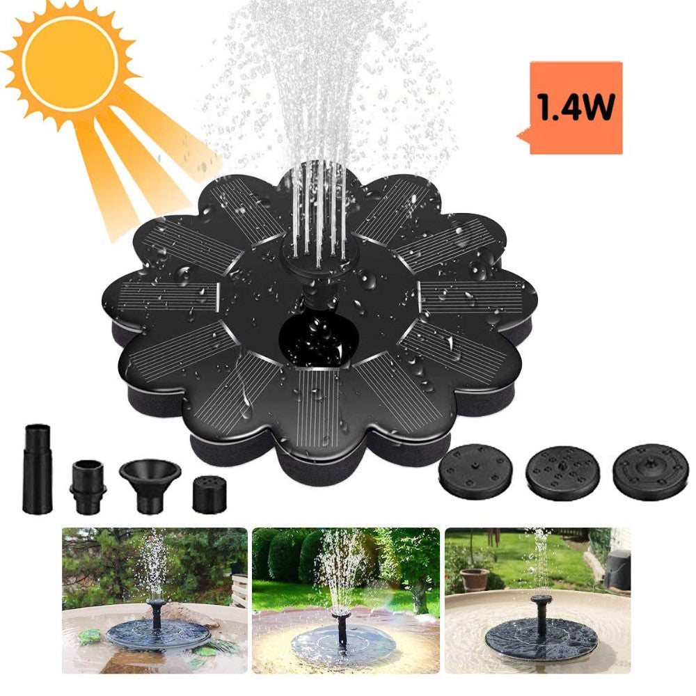 Fin liten fontän för din trädgård. Lägg fontänen i vatten så rinner den av sig själv. Den kommer med olika munstycken, så du kan välja hur vattenstrålarna ska se ut. Solljusets intensitet reflekteras i hur högt vattenstrålen skjuter upp. Fontänen är också smart i barnpoolen, där barnen kan leka med vattenstrålarna.