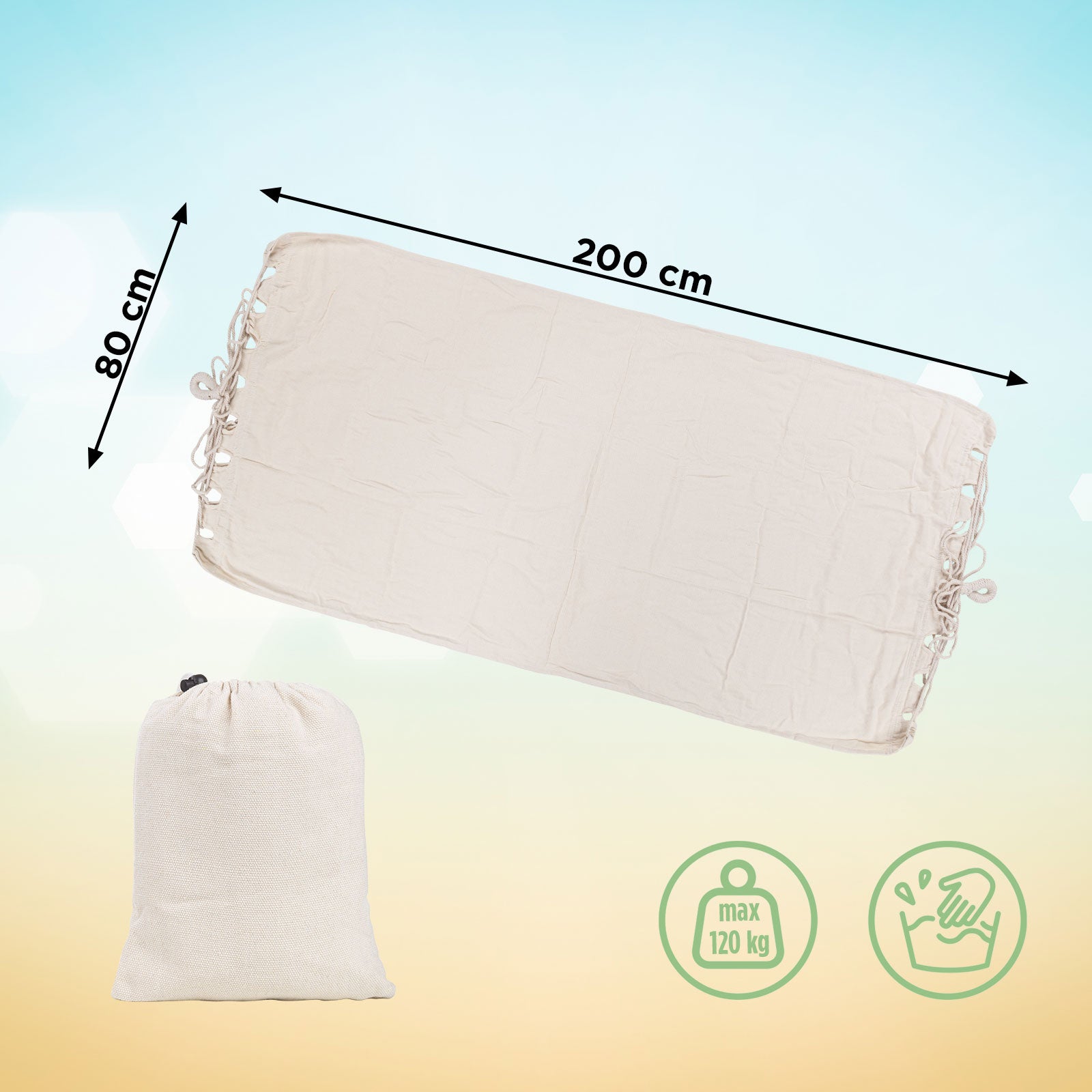 Mått: Längd 200 cm (tyg) / 250 cm (inkl rep), Bredd 80 cm