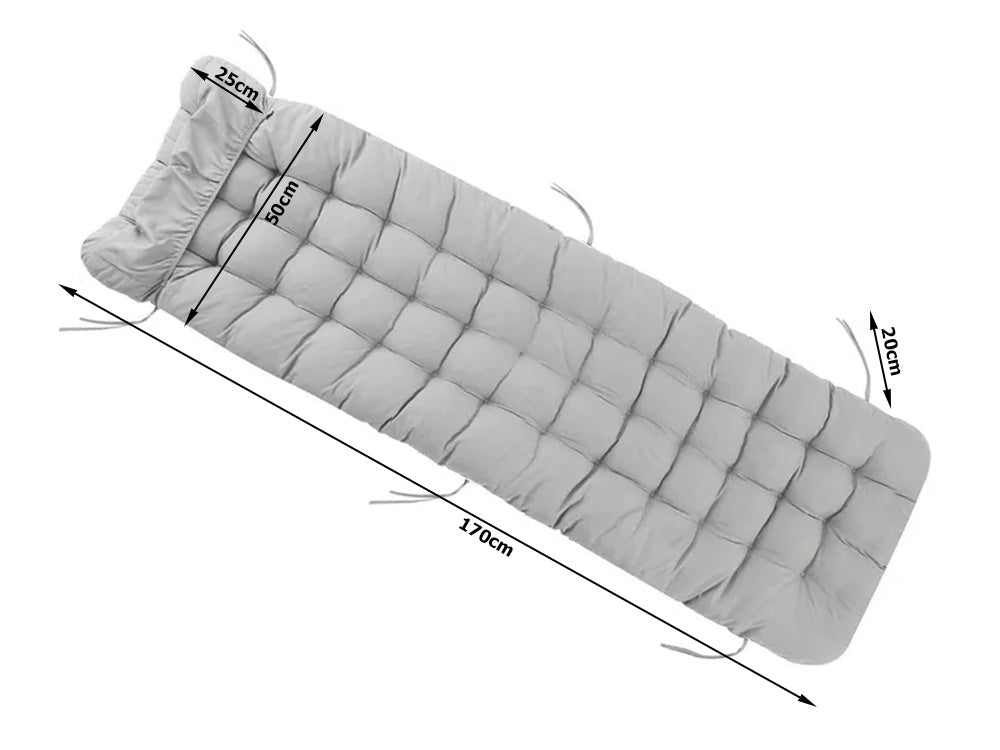 🔗 Praktisk montering Med smarta monteringsdetaljer kan dynan enkelt och säkert fästas på din solstol, vilket säkerställer att den sitter på plats även på blåsiga dagar. Den levereras med en krage för att fästas i ryggstödet och band för extra stabilitet.