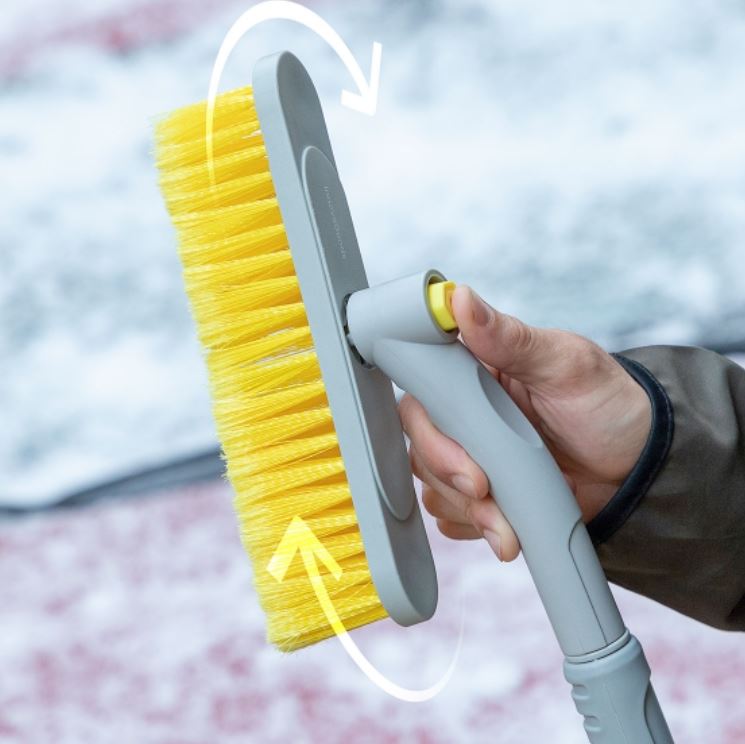 ❄️ Innovativ 3-i-1-design Denna isskrapa kommer med tre funktioner i ett verktyg: en platt isskrapa, en tandad isskrapa och en 360º roterande borste för snöröjning. De två avtagbara huvuden gör det enkelt att växla mellan funktioner, så att du snabbt kan ta bort både is och snö.